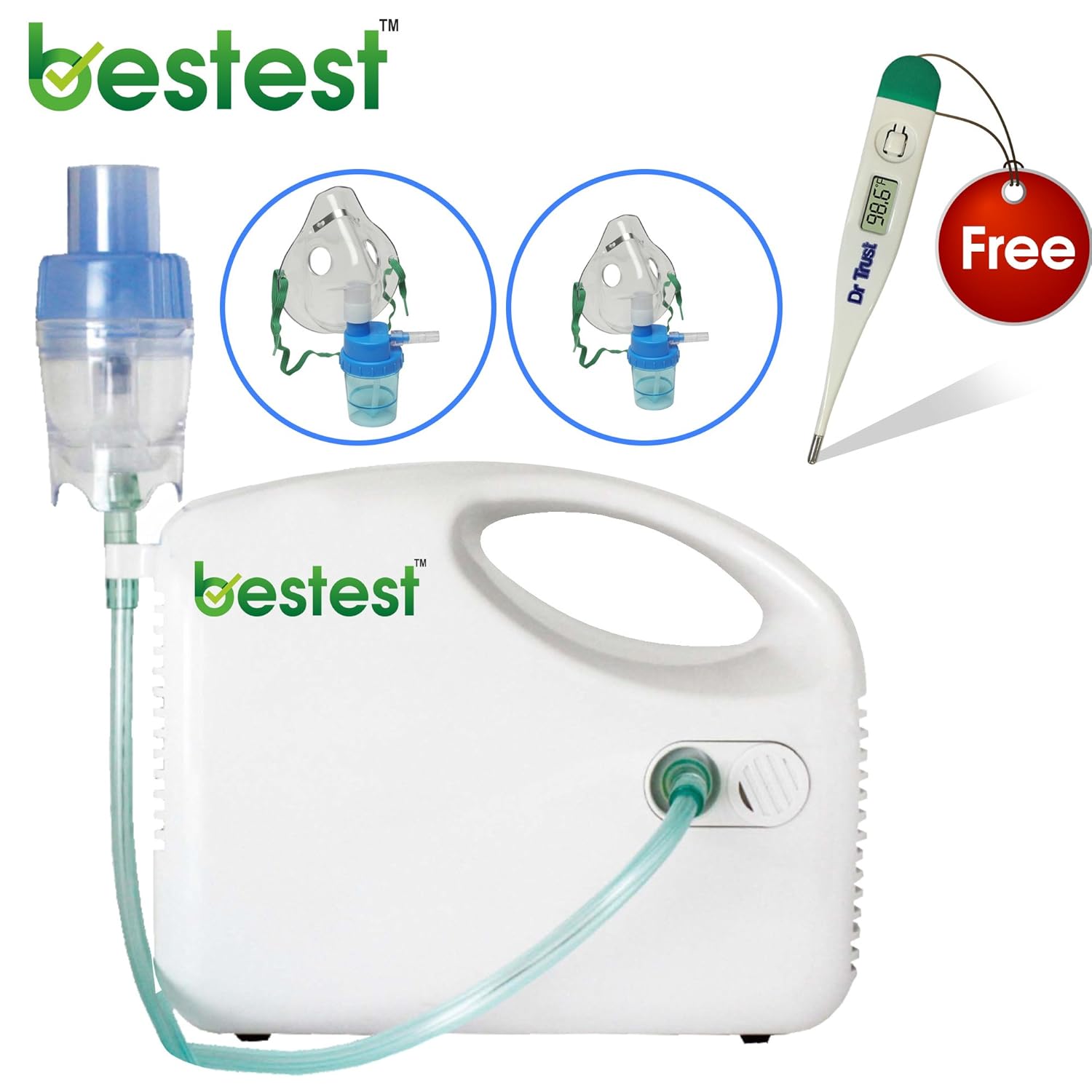 BESTEST COMPRESSOR NEBULIZER is developed for the successful treatment of Asthma, allergies and other respiratory disorders. It creates a stream of air that travels through clear tube to the Nebulizer. When air enters the Nebulizer, it will convert the prescribed medication into the aerosol mist for easy inhalation. BESTEST brand owned by Nureca Inc New York USA. Product Imported and distributed in India by Nectar Lifesciences Limited.