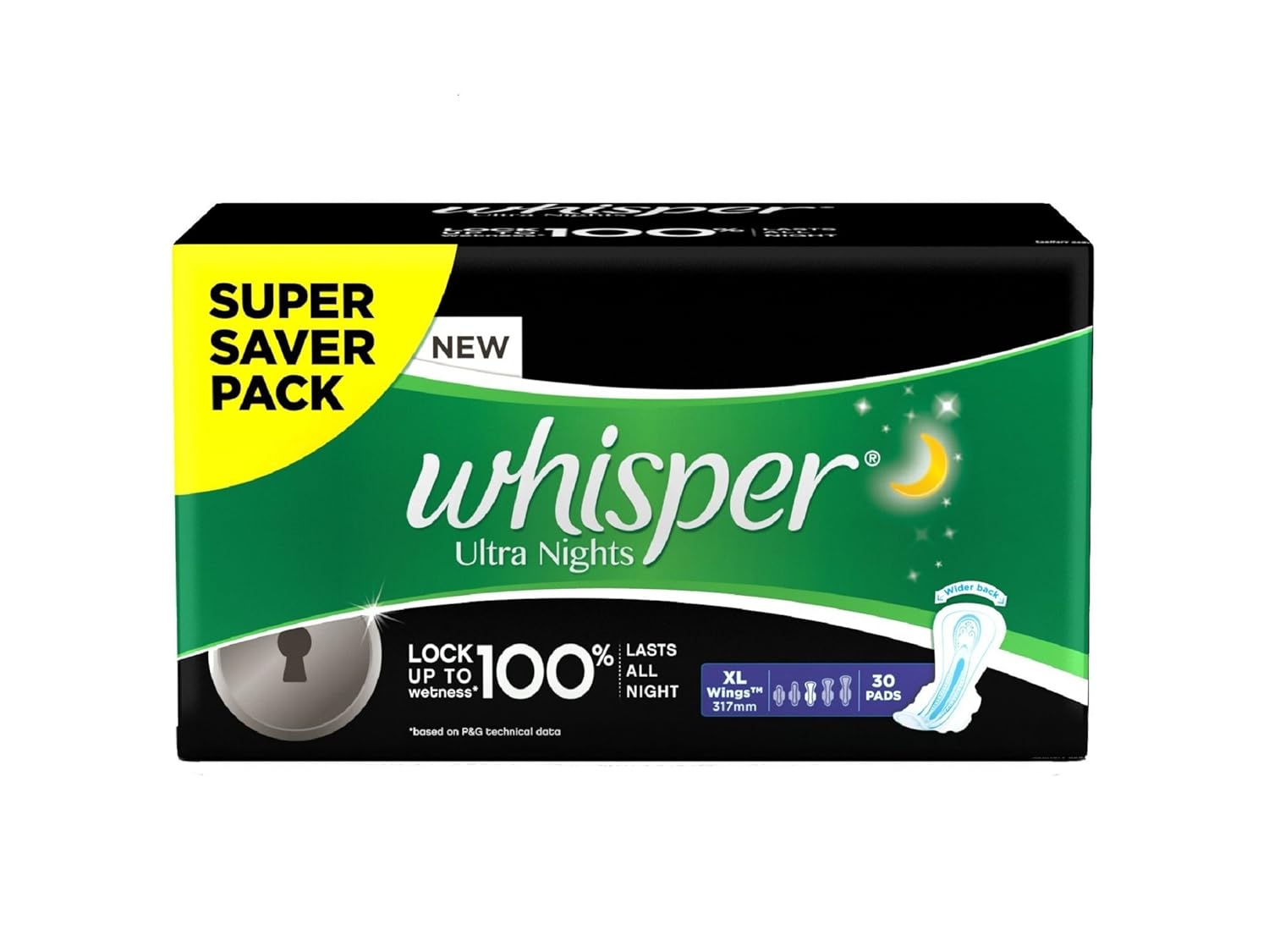 Whisper Ultra Night pads provide you long lasting protection throughout the night.