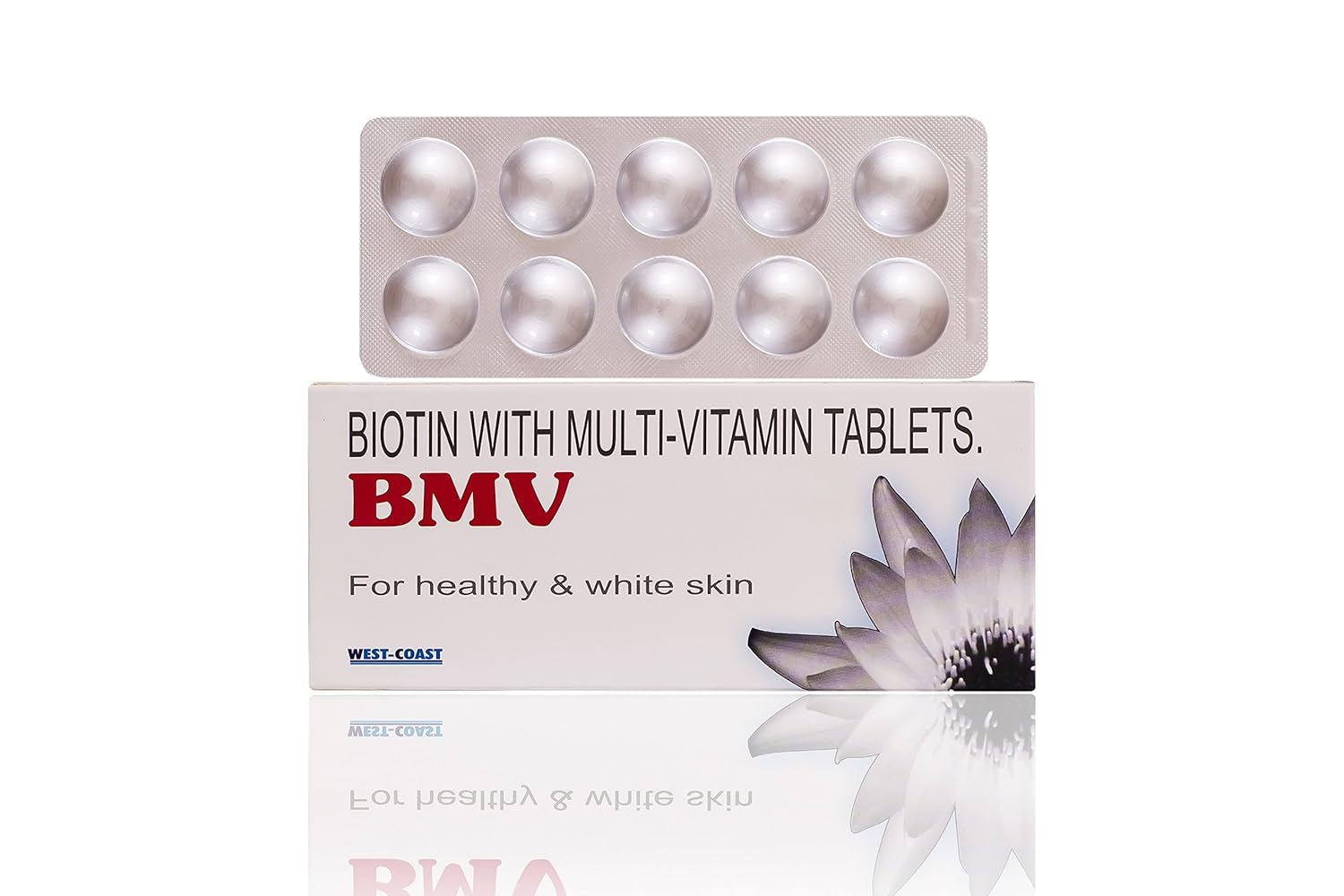 BMV Biotin Multivitamin 30 Tablets For Hair,Skin & Nails. BMV tablets contains Biotin(5mg) and multivitamins for healthy skin nails & hair.