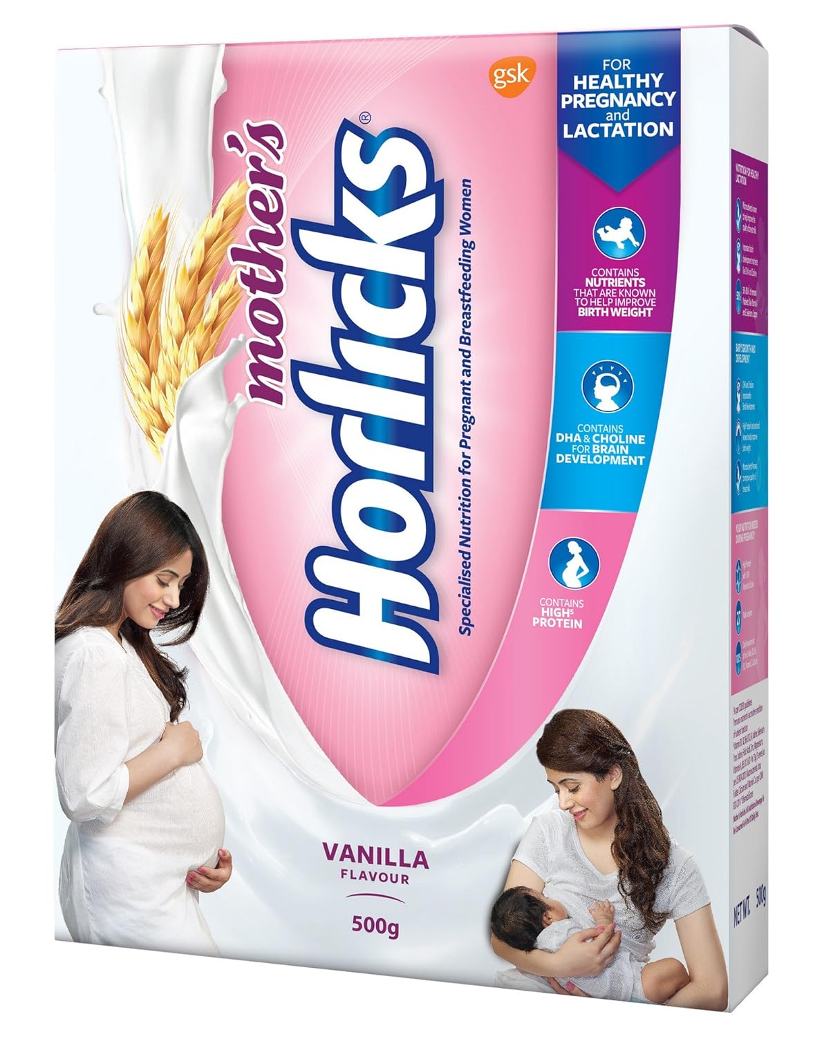 Mother's Horlicks, launched in 1997, is a superior nutritional supplement with 26 vital nutrients that is scientifically designed keeping the nutritional needs of the pregnant and breast feeding women in mind. An attempt to enhance nutritional superiority saw the launch of its new variant in May 2004 - Mother's Horlicks fortified with DHA. This unique formulation has an essential fatty acid called docosahexaenoic acid or DHA from a vegetarian source. Numerous studies have suggested that DHA helps in brain development of the child during pregnancy and the first few years of life. It is important to note that in infants, breast milk is the only source of DHA. In addition to DHA, Mother's Horlicks supplies the recommended quantity of ideal quality proteins [with 100 percent amino acid score]. Mother's Horlicks, in three serves [6 scoops], provides 100 percent of the recommended dietary allowance [RDA] for iron, folate, calcium, vitamins C, B2, B6 and B12 - nutrients that are essential for blood and bone health. Moreover, Mother's Horlicks has been manufactured through a natural process of malting or germination that helps to produce enzymes which in turn helps to breakdown complex starches and proteins into simpler molecules making it easy to digest. Mother Horlicks has best value for money and is the leading nutritional supplement for pregnant and breast feeding women. After all, every mother has a right to healthy babies.