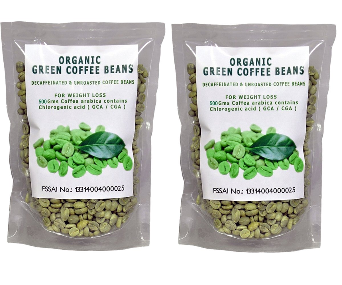ORGANIC GREEN COFFEE Beans ~ DECAFFEINATED GREEN COFFEE BEAN 500gm FOR WEIGHT LOSS (PACK OF 2)