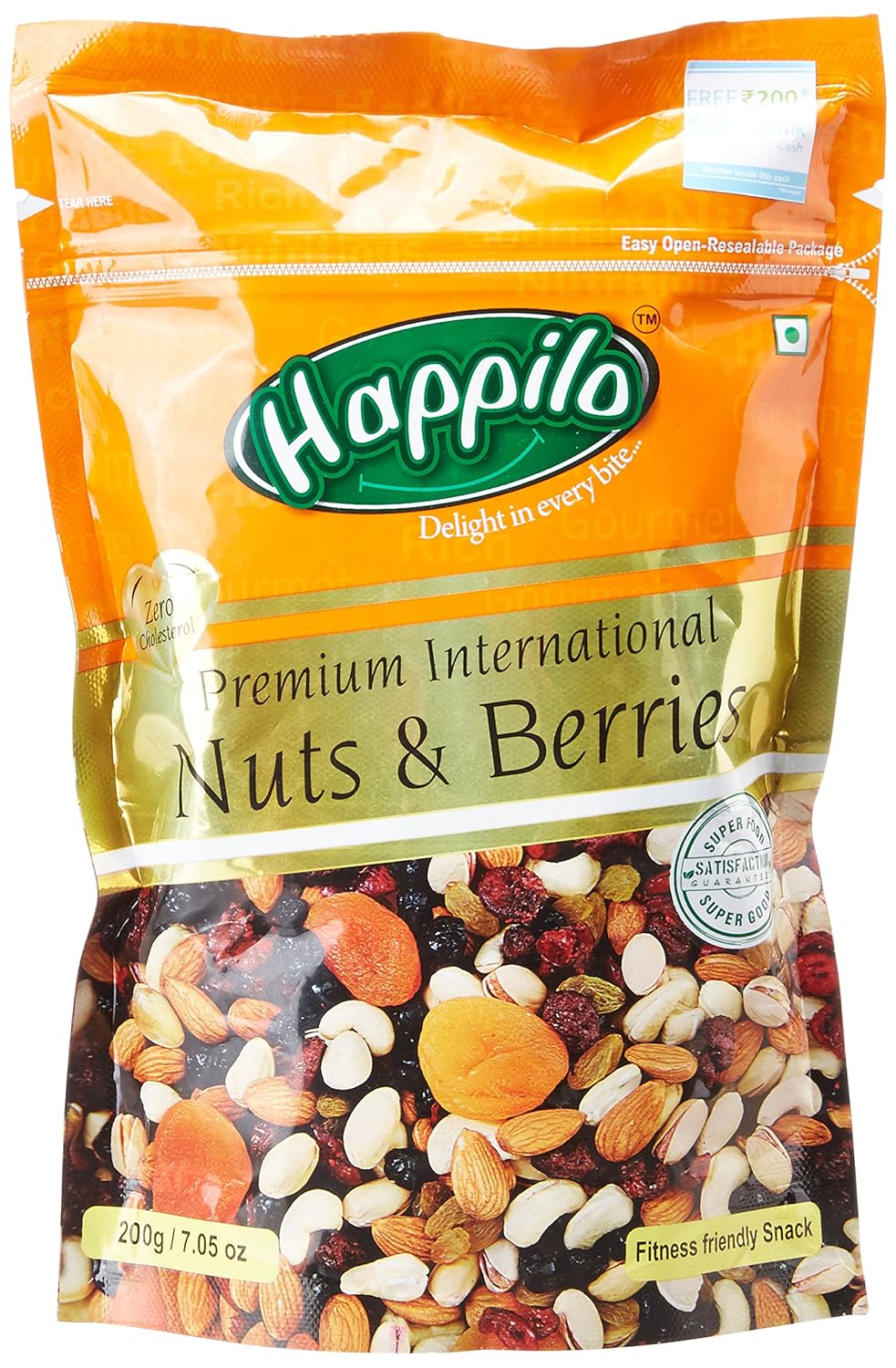 Nuts and Berries is an incredibly delicious and crunchy mix of Almonds, Apricots, Blueberries, Cashew nuts, Dried Cranberries, Dried Cherries, Pistachios and Raisins. This premium cocktail makes for a real great snack. These are simply nuts and fruits and nothing else. Time to be Happy, Lovely and Healthy.