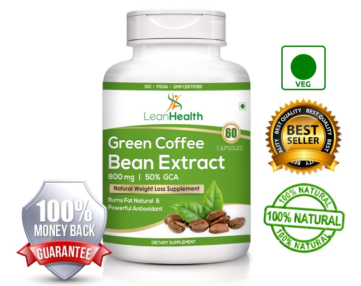 Leanhealth Pure Green Coffee Bean Extract 50% GCA 800MG 60 Capsules 100% Natural & Weight loss supplement 100% Lifetime Money Back Guarantee