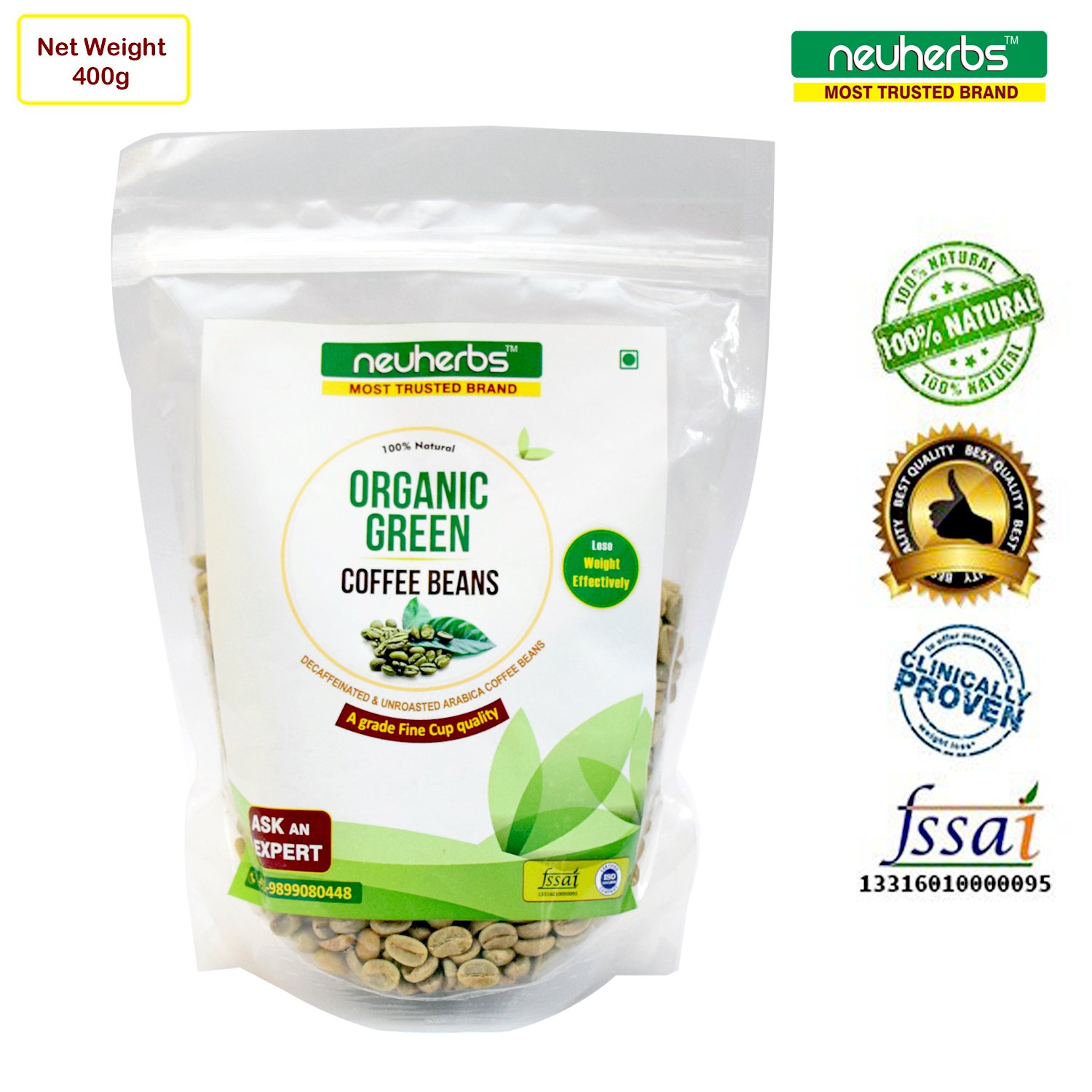 Neuherbs 100% natural Organic Green coffee beans are simply the raw, unroasted , fresh version of the coffee you drink in the morning. They Contain a naturally occurring active compound called chlorogenic acid which has been shown in clinical studies to aid in weight management. Green Coffee Bean is currently among the world's most popular weight loss supplements. As the name implies, this supplement is extracted from green coffee beans. It contains a substance called Chlorogenic Acid, which is believed to be responsible for the weight loss effects.