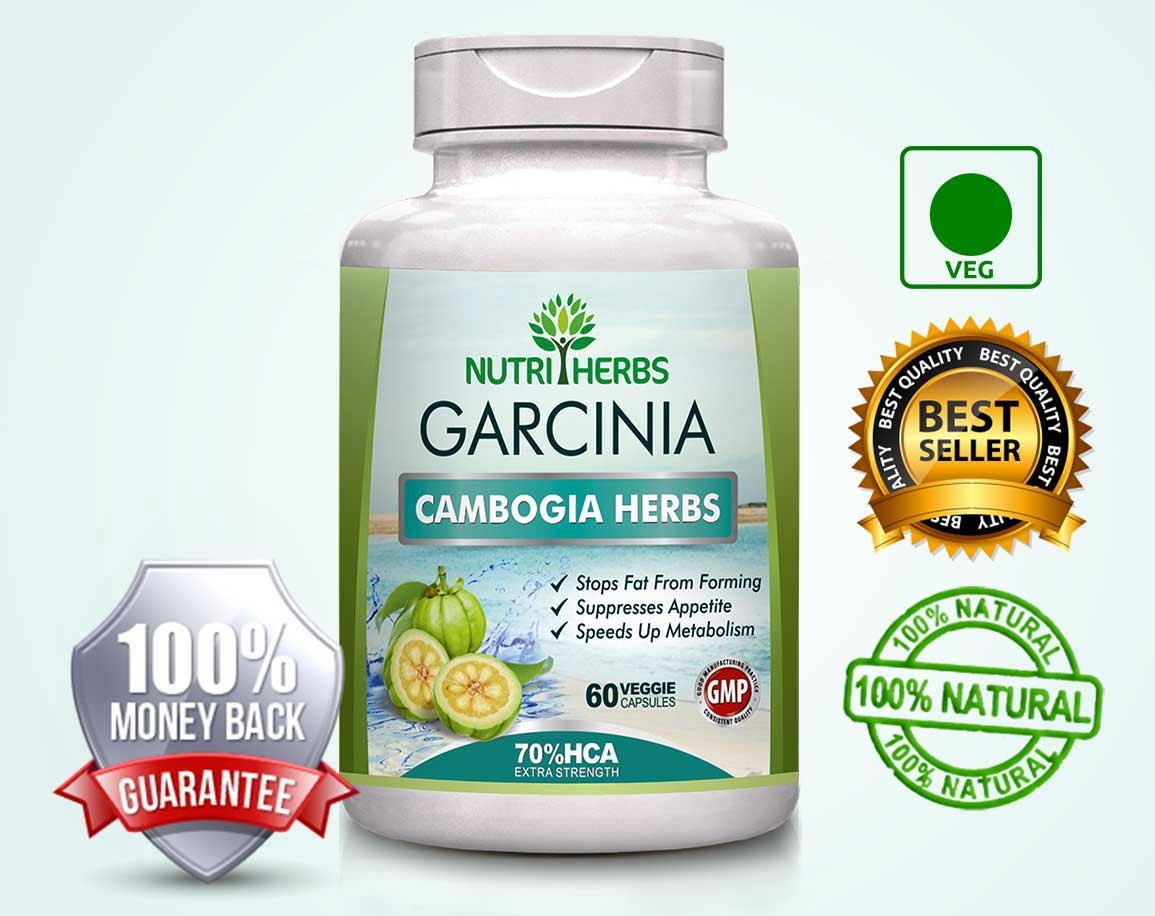 Nutriherbs PURE GARCINIA CAMBOGIA 70% HCA 800MG 60 VEG CAPSULES 100% Natural & Pure Maximum Potency 100% Lifetime Money Back Guarantee