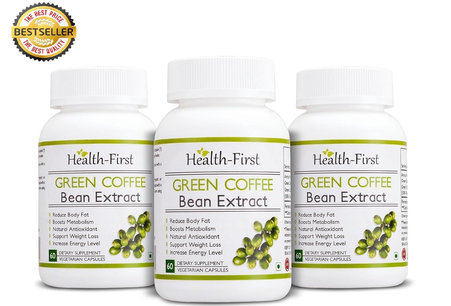 Green coffee beans are unroasted coffee beans that have contained the highest level of chlorogenic acid compare to regular, roasted coffee beans.chlorogenic acid affects the body, bloodugar and increase metabolism which helps to burn extra fat in the body. Dr. Oz confirmed that ";green coffee bean burns fat fast"; and no exercise or diet is needed. Health-first green coffee beans is an effective way to burn fat. Health first provide you the gift of nature now at your door step. Product features 1.highest quality- we ensure the best quality from various available sources so that the customer will get the best from the nature. 2.keep healthy and fit by burning excess calories - include health first green coffee in your daily diet to burn extra calories also by getting in shape. 3.contain natural anti-oxidant- natural 4.stimulantfree-Decaffinated,Health first Green Coffee Bean Extract 800 contains approximately 5%caffeine per capsule, as same as cup of a coffee. Best customer service To help you on any query for the product we have the professional which help you on every matter related to our products. Now you can clear your every doubt the support is now just a phone call away. ORDER NOW TO GET THE BEST AVAILABLE GREEN COFFFEE BEAN EXTRACT RIGHT AT YOUR PLACE. Being health is a lifestyle.