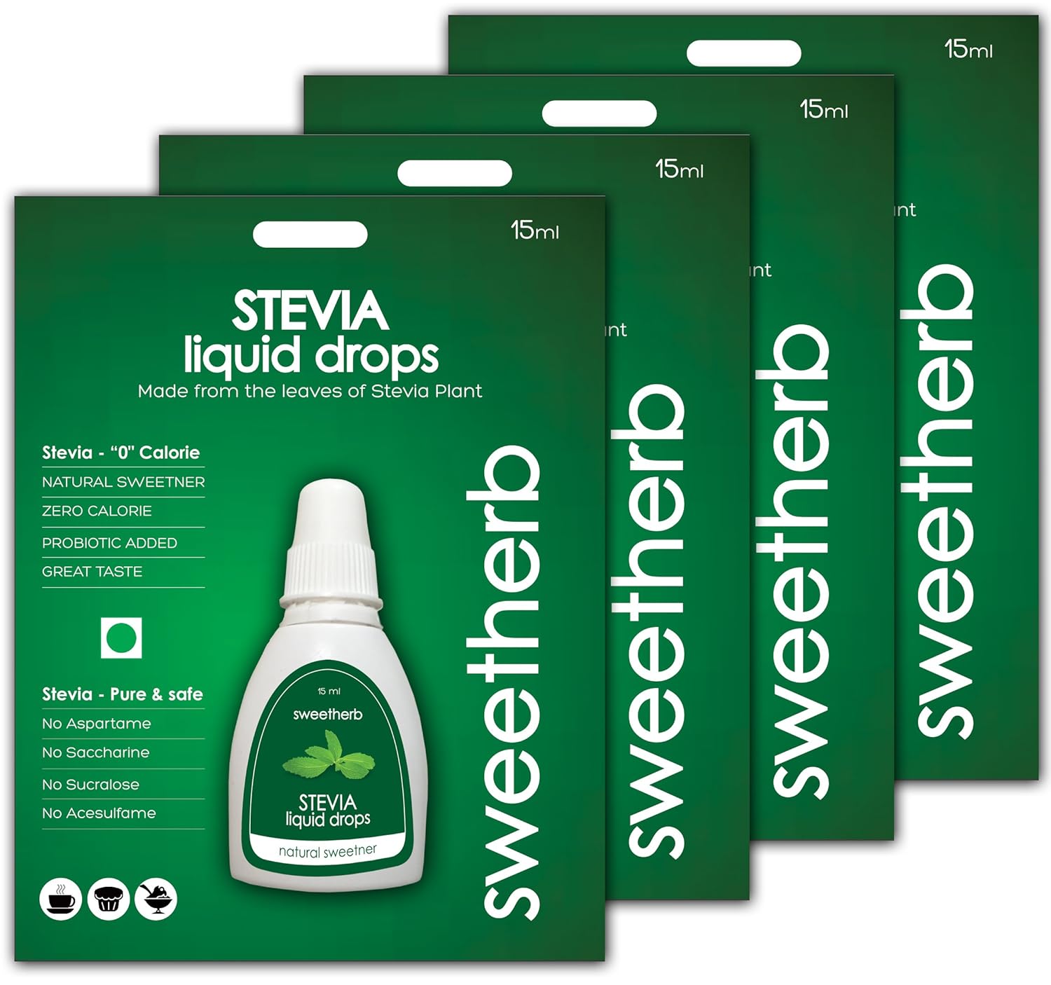 Sweetherb Stevia Sugarfree Liquid - 15 ml (Combo of 4)