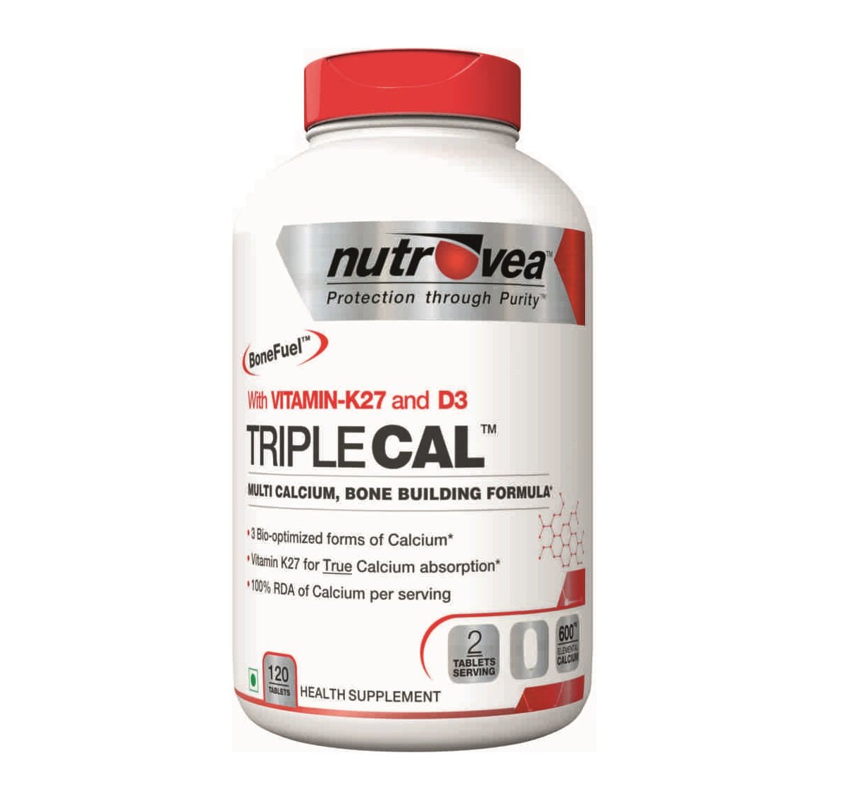 Nutrovea TRIPLECALTM - Multi Calcium, Bone Building formula. Nutrovea TRIPLECALTM is a scientifically up-to-date, patent pending calcium formula, with superior bone-mass building capabilities than ordinarily found calcium carbonate supplements*. Nutrovea TRIPLECALTM contains 3 highly bioavailable Calcium forms, which maximize the availability of elemental Calcium for osteoblastic activity (building new bone mass). Nutrovea TRIPLECALTM uses for the first time, a highly stable form of Vitamin K2-7 along with Vitamin D3 to ensure True Calcium Absorption. For all-round bone care support, Nutrovea TRIPLECALTM also provides other density-accretive nutrients, namely Phosphorus, Zinc and Magnesium, which together with Calcium, help protect and build new bone*.
